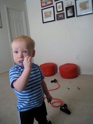 I love that the kids both got sick of playing with them, so Cal grabbed a Placker and started flossing his teeth. Tillie grabbed her crayons and got to work. Funny.