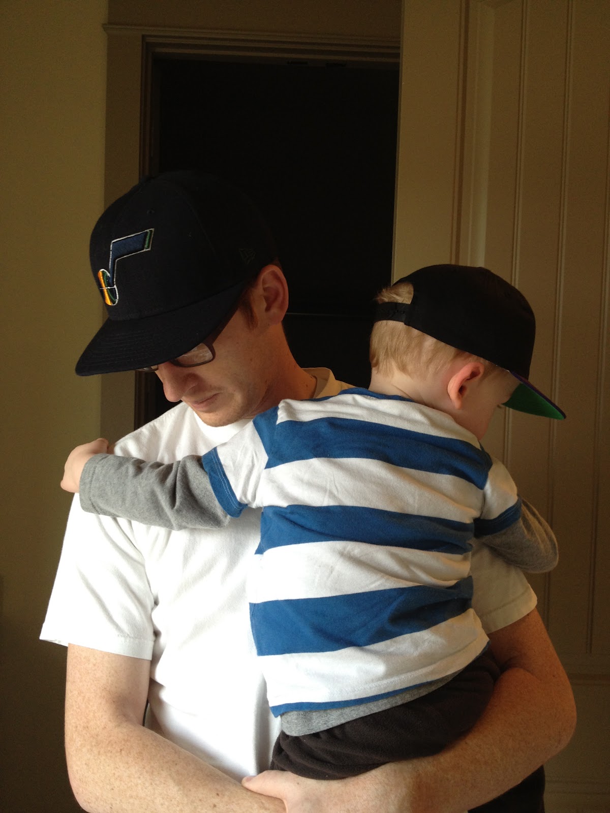 ::: In honor of Aaron's new birthday hat (and Cal's new love of all things hats) Aaron decided to go online and purchase a mini Jazz hat for Calvin. Two peas in a pod, these two. Pretty cute.